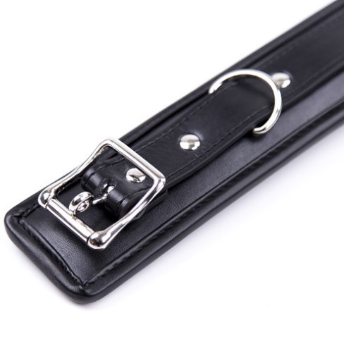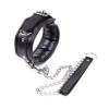 Unisex Padded Strict Black Leather Premium Locking Collars With Traction Chain