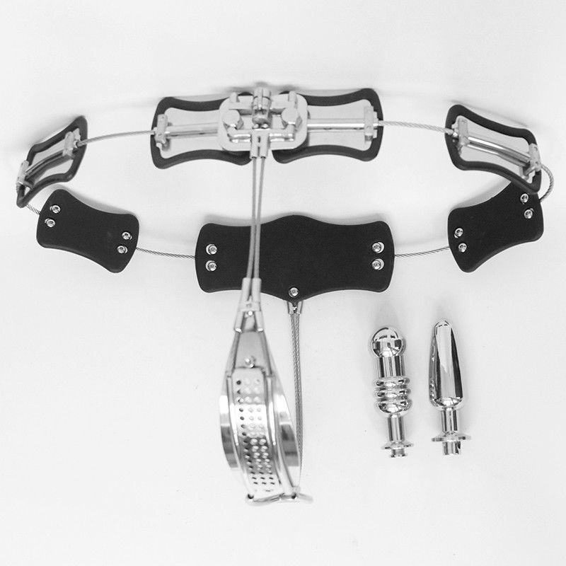 Item Name: Stainless Steel Model-T Adjustable Female Chastity Belt Device With Vaginal Plug + Anal Plug