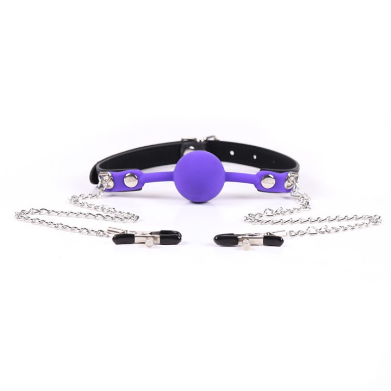 Nipple Clamp With Purpel Silicone Ball Gags