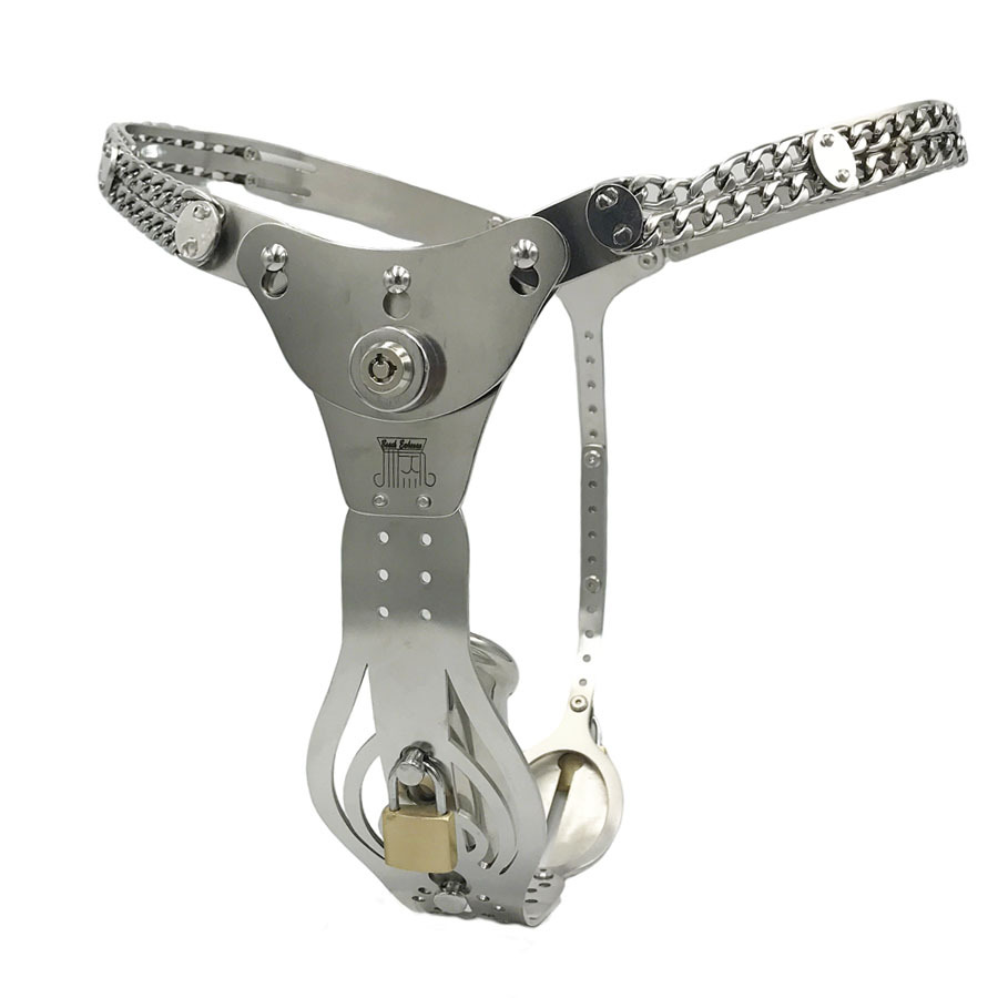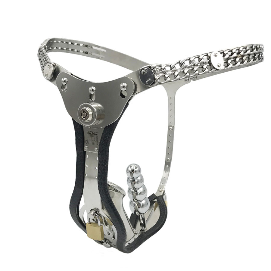 Stainless steel chain waist belt press lock chastity belt ZC256 There are five colors Black, pink, blue, red, white We default to sending black The adjustable range of waist circumference is 76-100cm