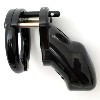 The cage portion has two guide pins and a locking pin hole. The cuff ring goes behind the ball sack and over the penis. Install the locking pin and the spacers. Put the cage over the penis and then line up the cage portion with the cuff ring. Slide the guide pins and locking pin into place and attach a lock on the tip of the locking pin. Once you have found the exact fit, cut the ends of the guide pins with a pair of side cutter pliers and smooth the edges with an emery board.