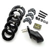 1. Comes in five sizes: 1 1/2”, 1 5/8”, 1 3/4”, 1 7/8” & 2.0”. These five sizes come with each order. This allows the wearer to experiment to find his exact size. The rings swivel at the bottom making it easy to put on. Each ring consists of two guide pin holes and a recessed locking pin hole. Spacers are provided for an individual fit. These spacers go over the locking pin, between the cuff ring and the cage.