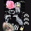 1. Comes in five sizes: 1 1/2”, 1 5/8”, 1 3/4”, 1 7/8” & 2.0”. These five sizes come with each order. This allows the wearer to experiment to find his exact size. The rings swivel at the bottom making it easy to put on. Each ring consists of two guide pin holes and a recessed locking pin hole. Spacers are provided for an individual fit. These spacers go over the locking pin, between the cuff ring and the cage.